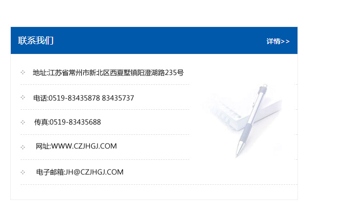 傳真:0519-83435688    郵編:213135    網址:WWW.czjhgj_com.deerll.com    電子郵箱:JH@czjhgj_com.deerll.com